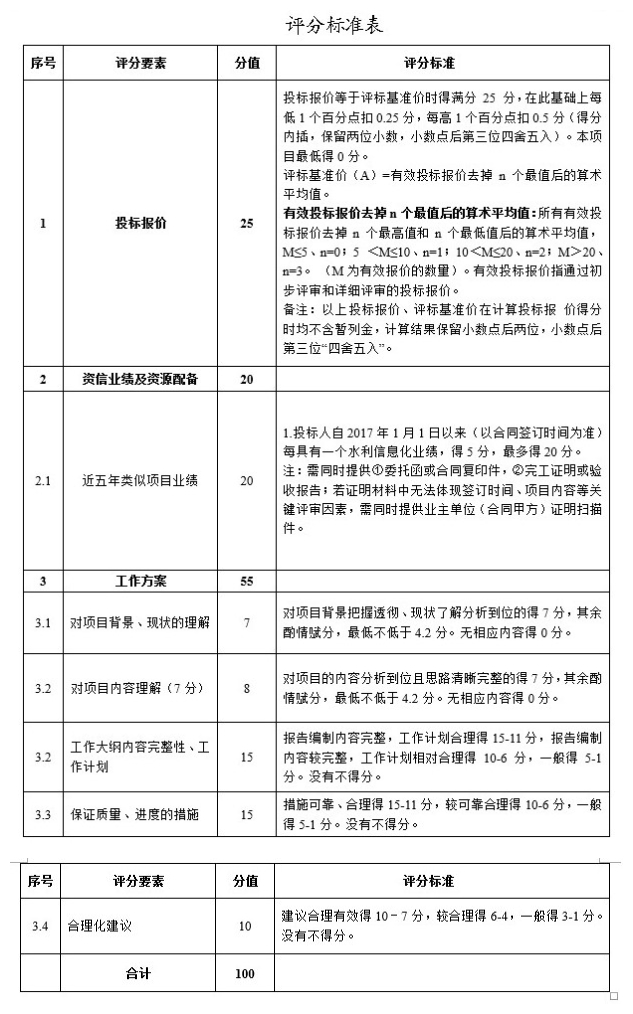 本項(xiàng)目在供應(yīng)商滿足資格要求的前提下依據(jù)業(yè)績(jī)、資信、報(bào)價(jià)等方面進(jìn)行綜合評(píng)選,詳見(jiàn)評(píng)分標(biāo)準(zhǔn)表。本項(xiàng)目最高限價(jià)為95萬(wàn)元。