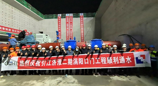 夜以繼日攻堅克難,彰顯中水淮河速度。渦陽水廠分水口門工程工期緊,任務重,永久用地及臨時用地征遷難度大,工程于10月7日正式開工;10月25日進行首倉砼澆筑(主泵房底板);12月8日完成除主泵房地面以上及副廠房一層以上的全部砼澆筑;12月24日完成全部涉及通水的水機設備、金屬結構、閥管件、電氣設備安裝與調(diào)試,全部引水段、輸水段及永久供電線路施工,具備通水條件;12月26日工程順利通水,整體具備長期供水條件;12月27日,正式開始向渦陽地表水廠供水。安徽省水利廳就該工程年底通水目標進行確認后,公司黨委及領導高度重視,各部門、各專業(yè)派駐人員急現(xiàn)場之所急,解現(xiàn)場之所需,項目部及各參建單位錨定目標、爭分奪秒,上下聯(lián)動全力保障既定目標節(jié)點實現(xiàn)。