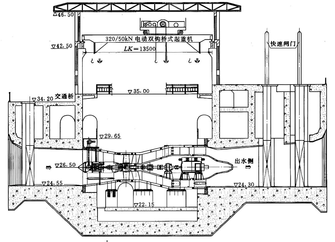 藺家壩泵站是南水北調東線工程中第一座采用大型齒聯燈泡貫流式機組的泵站,由中水淮河公司主導設計,總投資2.57億元。工程自2006年1月開工建設,至2019年5月通過驗收圓滿收官,歷經十三載春秋。藺家壩泵站是一座規模宏大調水工程,工程規模為Ⅰ等大(1)型,泵站設計流量75立方米每秒(裝機流量100立方米每秒),總裝機容量5000千瓦,設計揚程2.40米。泵站安裝4臺2850ZGQ25-2.4型后置燈泡式貫流泵機組,承擔跨流域調水、區域排澇、生態保護等多重使命,為南水北調東線“江水北上”提供了“最后一公里”的堅實保障。